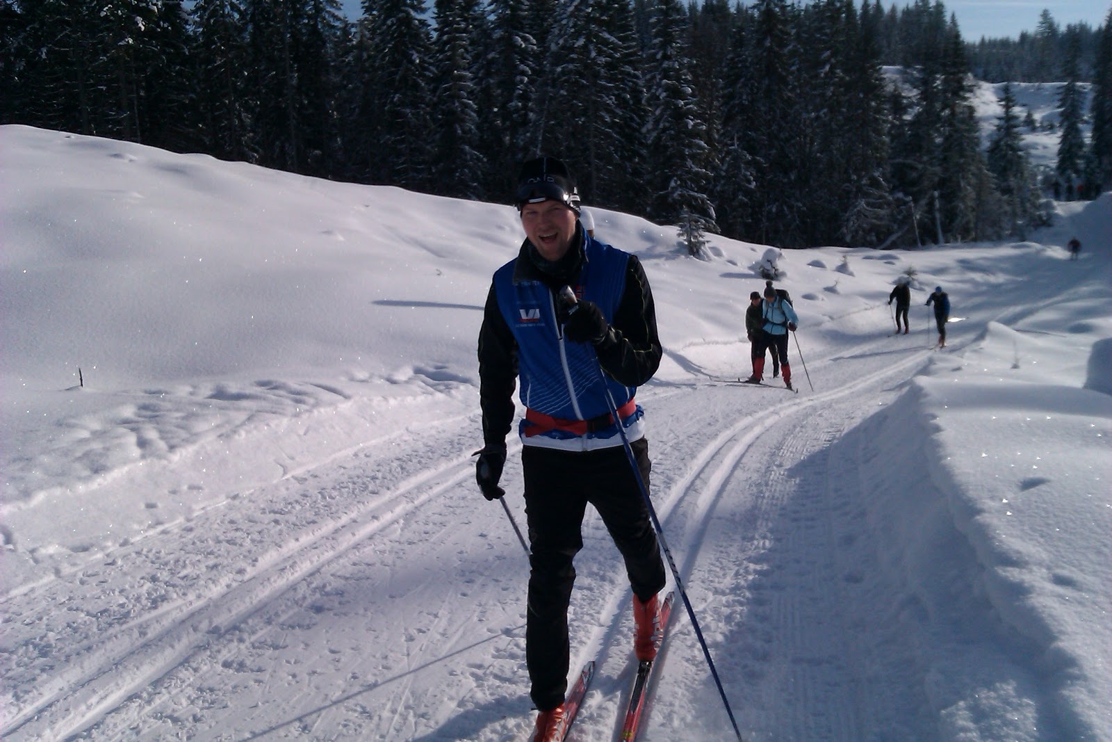 Det er nemlig under to uker igjen til vinterens høydepunkt, Vasaloppet. Dessverre har ikke langrennsesongen blitt så bra som jeg hadde håpet på. Det varte og rakk før snøen kom og jeg var ikke på snø før i midten av januar. Heldigvis hadde jeg lagt et brukbart barmarksgrunnlag, men den sene starten gikk utover mengden på ski og dermed teknikktreningen. Teknikkurset jeg gikk på i regi av Skiforeningen var kjempebra. Det kommer til å hjelpe meg på sikt. Bare så synd at det ikke kunne snø litt mer og være litt bedre forhold denne vinteren. Isete og steinete løyper er ikke helt min greie. Blir litt for mye knall, fall og herpa ski. Har lagt ved noen bilder for å minne om hvordan det burde være. Knipsa litt på vinterens flotteste tur. 5 mils tur med Peder Ullevold. Sollihøgda-Løvlia-Sollihøgda.
