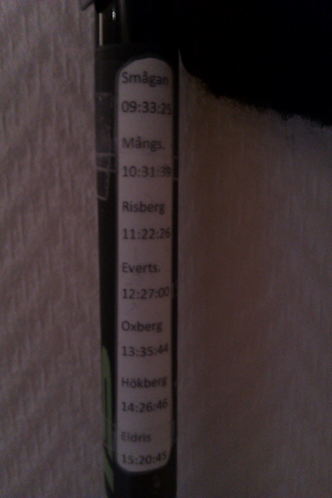 Som ifjor, så var jeg nå veldig sliten, men det var heldigvis ikke helt tomt. Det er en del bakker mellom Oxberg og Hökberg og det er faktisk "deilig" å få avlastet armene litt og brukt beina. De svenske løperne er veldig lite glad i motbakker og jeg passerte ganske mange ved å "løpe" helt til høyre på utsiden av sporet. Utrolig motiverende. Kom til Hökberg og lå nå 1:06 foran fjorår. De siste 19 km fra Hökberg og inn er ganske lettgåtte, men jeg var fryktelig sliten. Det var på tide å ta en tur ned i kjelleren og se hva jeg kunne finne. Kjempet på det jeg kunne mot Eldris. På dette strekket er det en masse små drikkestasjonen. Både offisielle og uoffisielle. Deilig å få litt andre ting å tenke på enn bare smerte. Fikk blant annet i meg verdens beste appelsinbit :) Jeg klarte å gå betraktelig raskere enn ifjor og passerte Eldris 1:16 foran. Banket innpå en Maxim gel som planlagt og heiv meg på stavene.
